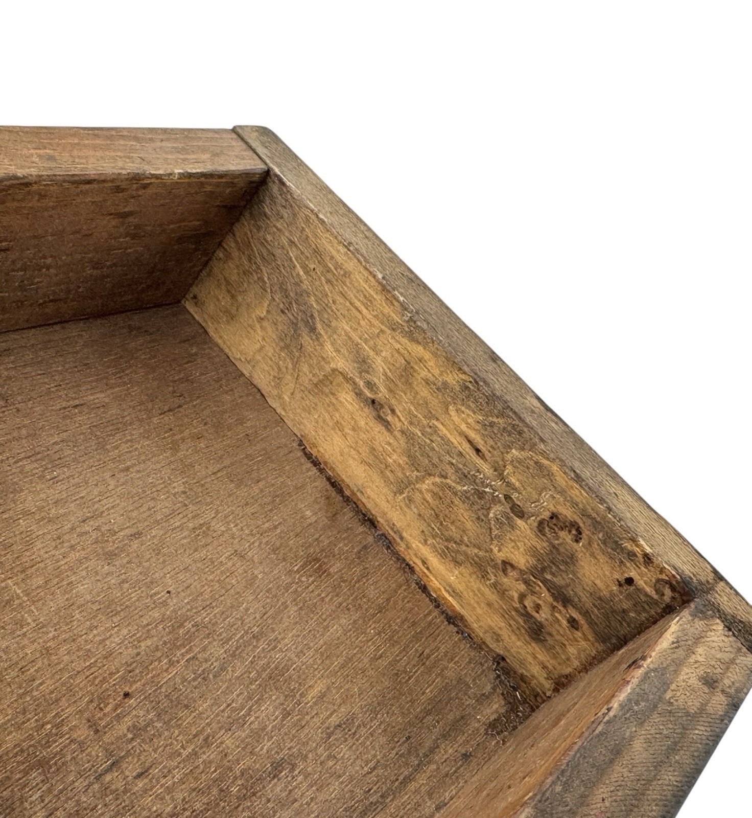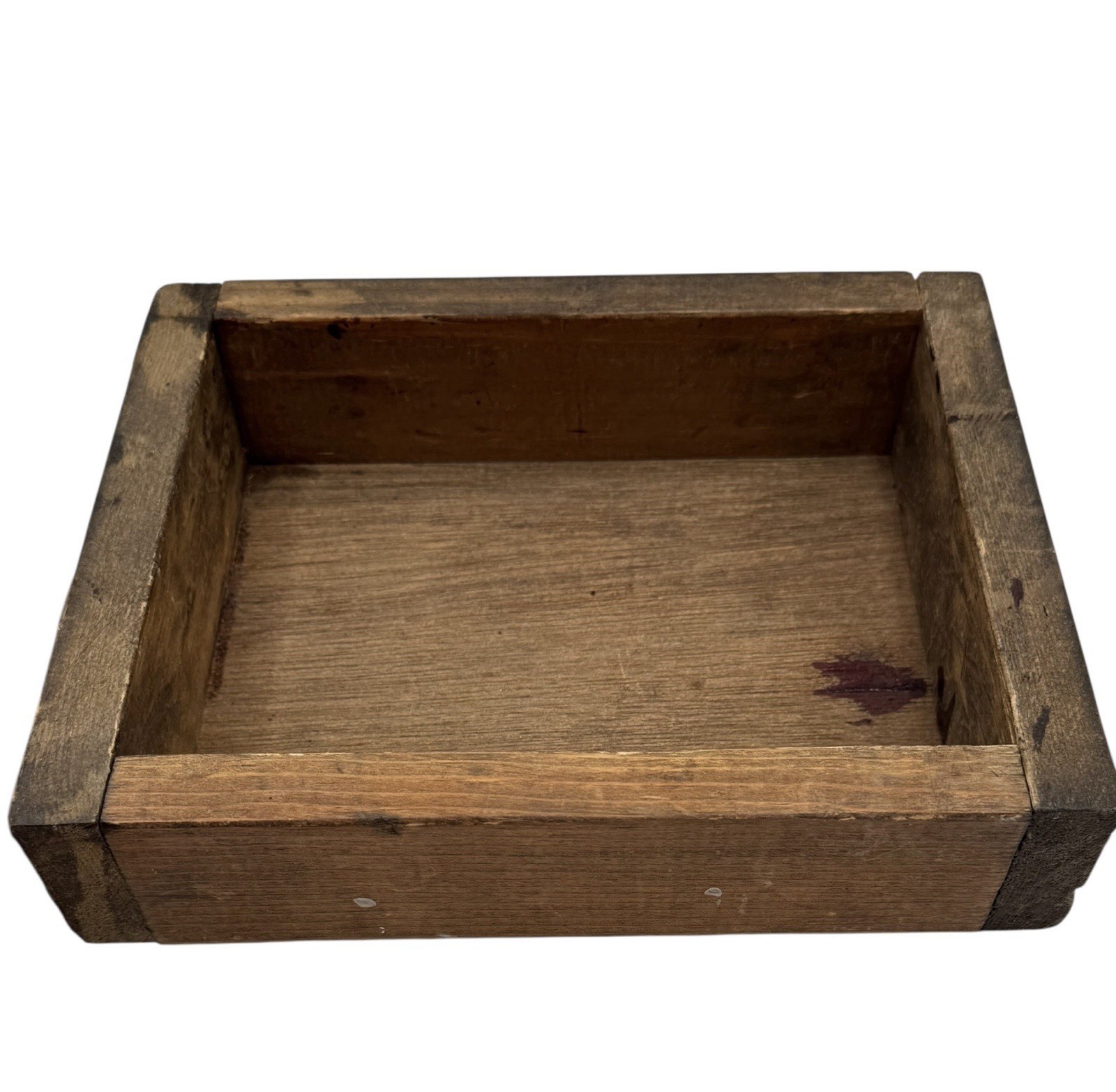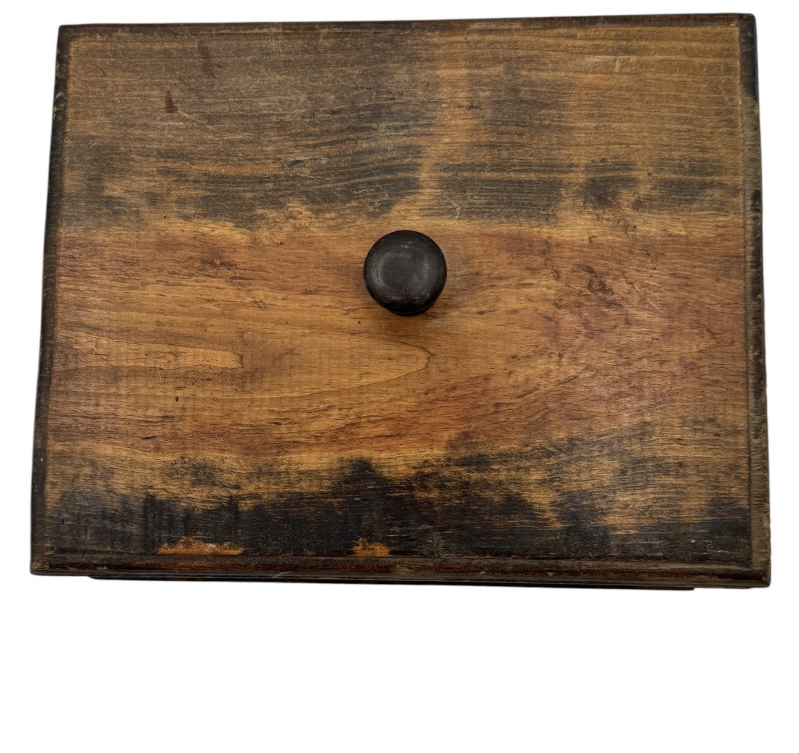 - Primitive Wooden Box with Lid Handmade 9" x 7" Rustic Basic Weathered Wood Vtg