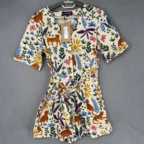 - Princess Highway Dress Womens 10 Floral Button Down Cotton Linen Blend Retro