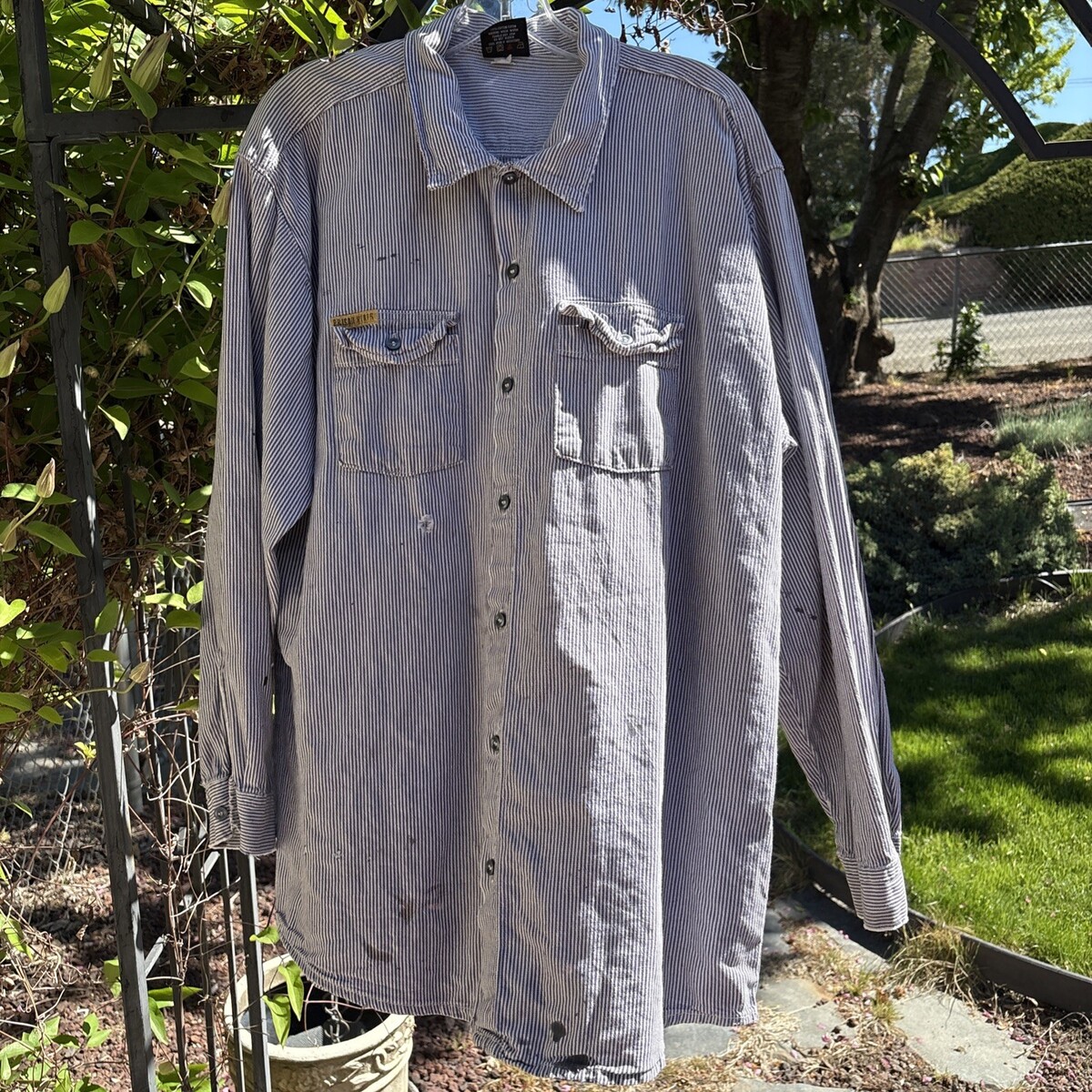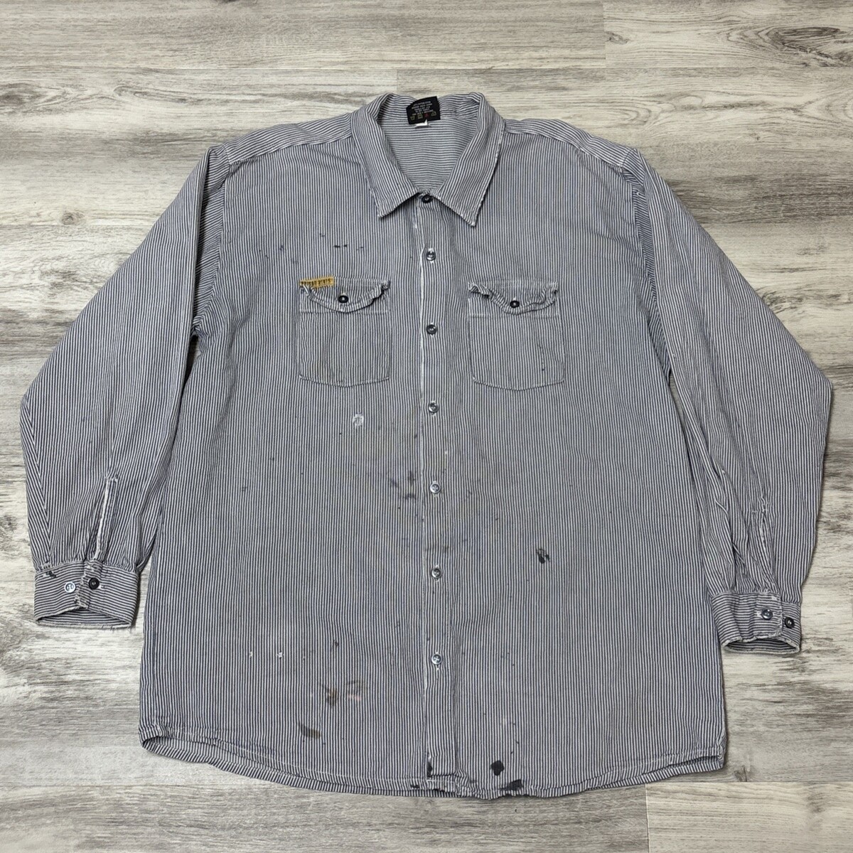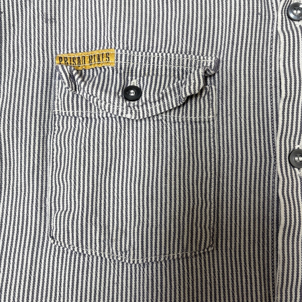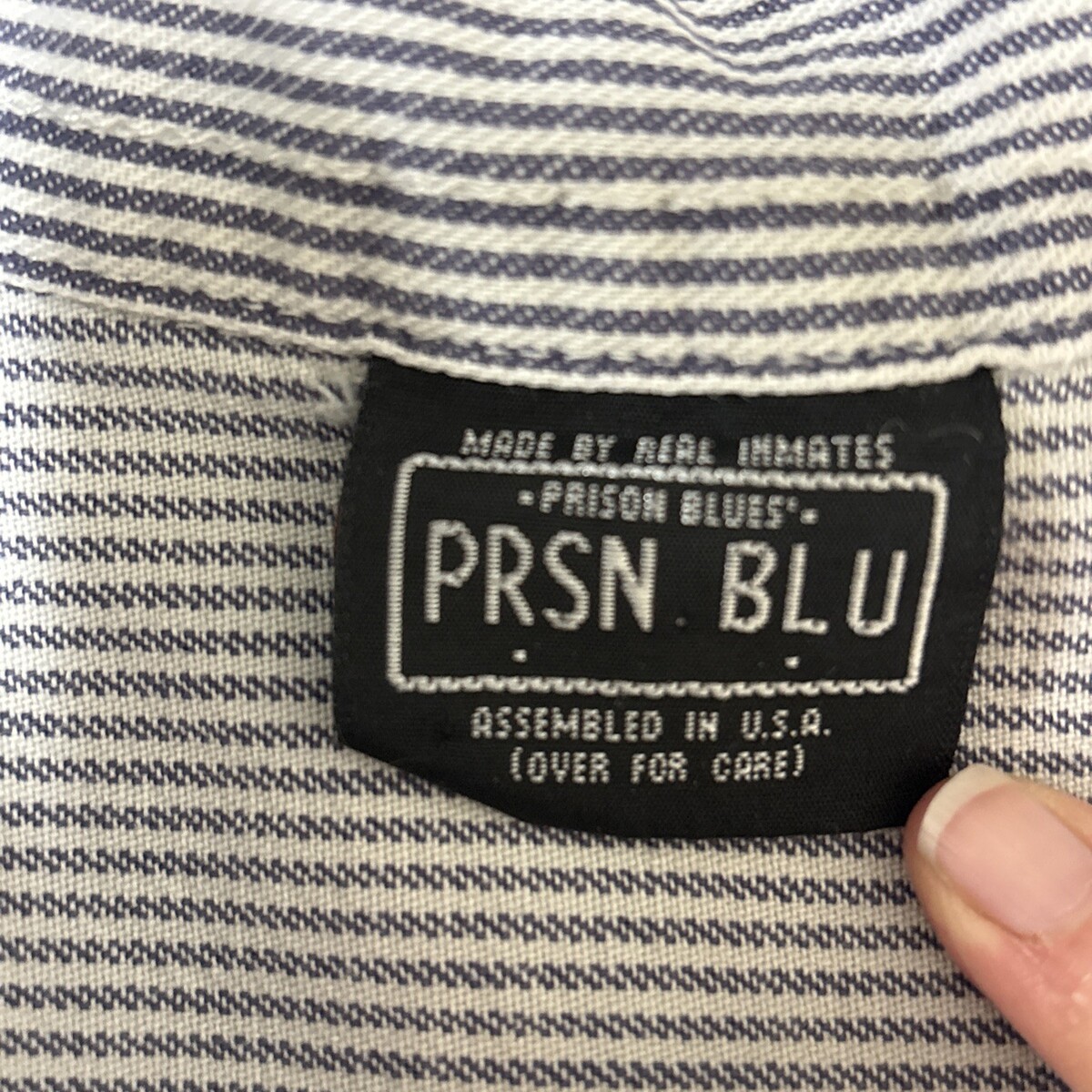PRSN BLU Prison Blues Shirt Mens 2XL Hickory Railroad Stripe Inmate Made In USA