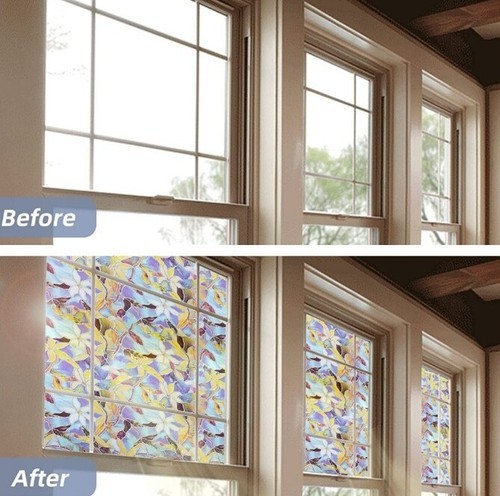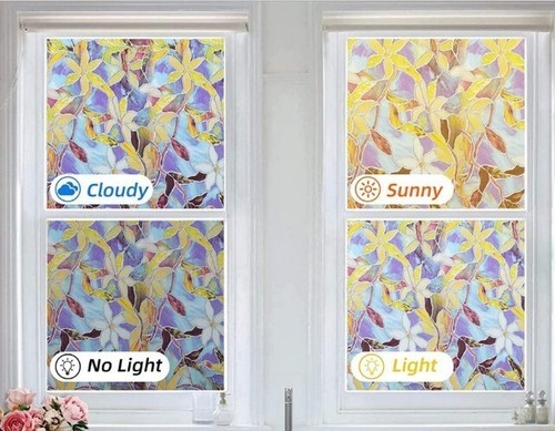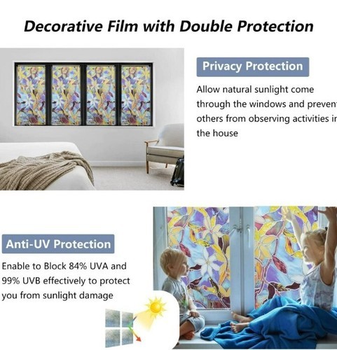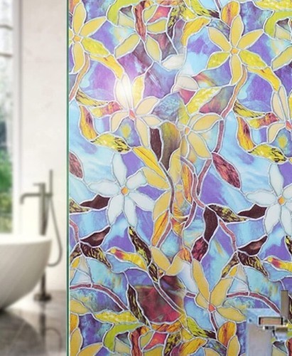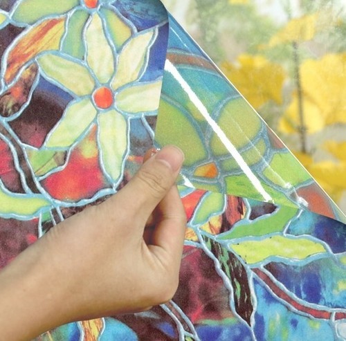 Privacy Window Film ~ Floral Window Sticker ~ 17.7" x 78.7" ~ FLOWER STAIN GLASS