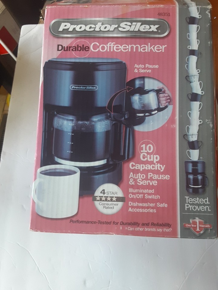- Proctor Silex Coffee Maker, 10 Cup with Glass Carafe, Black, Model 48351PS - NEW