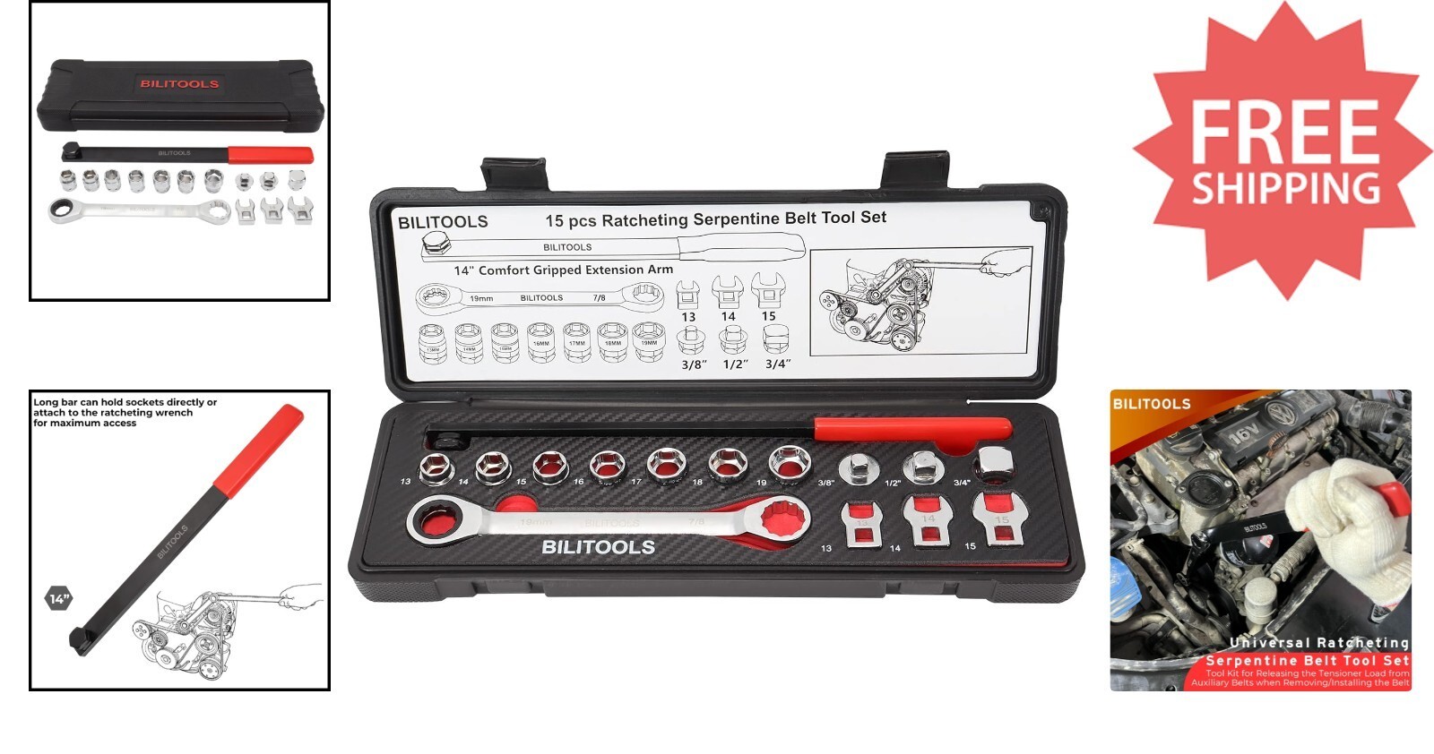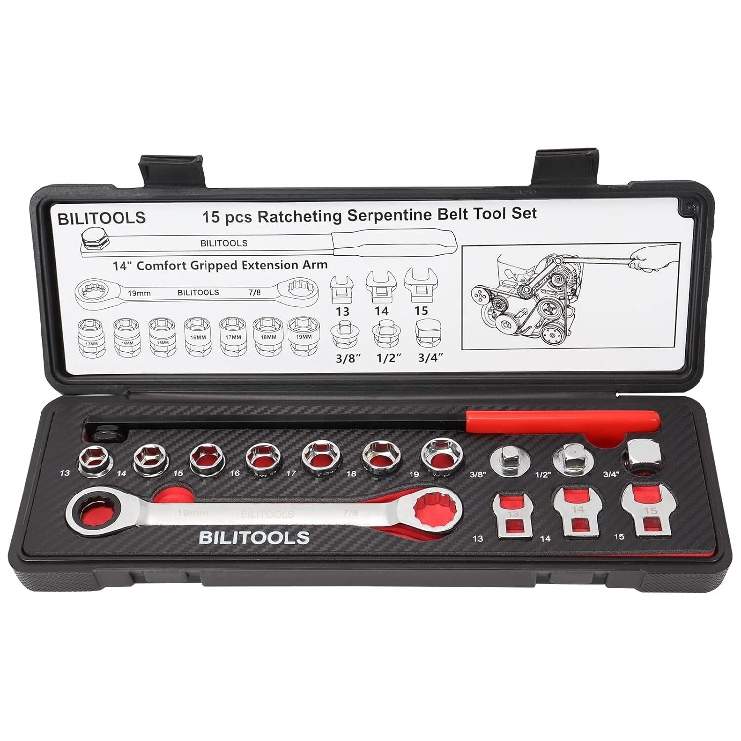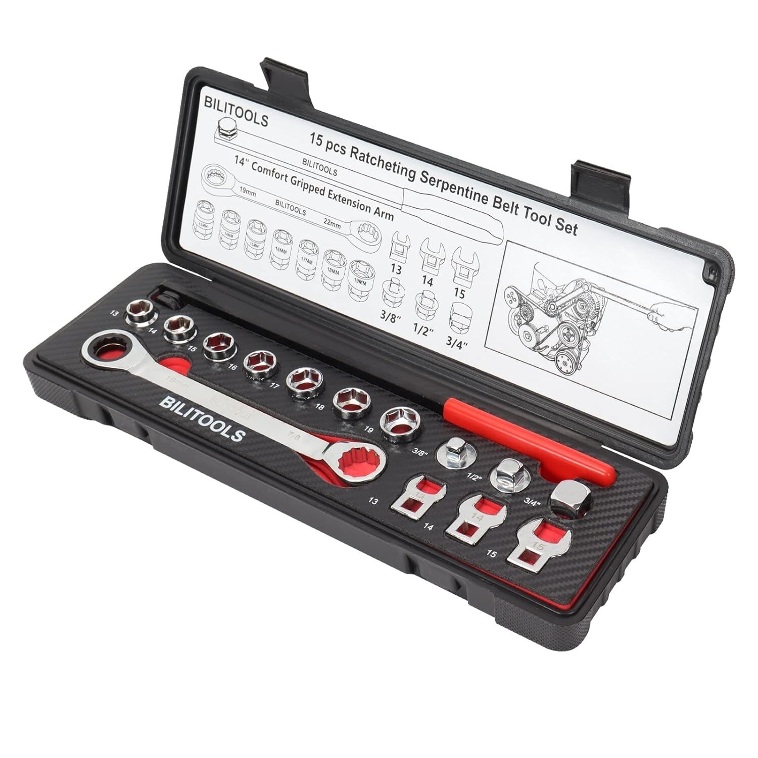- Professional 15-Piece Ratcheting Serpentine Belt Tool Set - Carbon Steel Quality