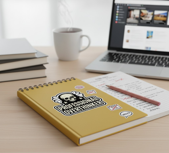 Wear your badge of mental intensity proudly with this "PROFESSIONAL OVERTHINKER" sticker! It?s the perfect acknowledgment for anyone whose brain never takes a break.