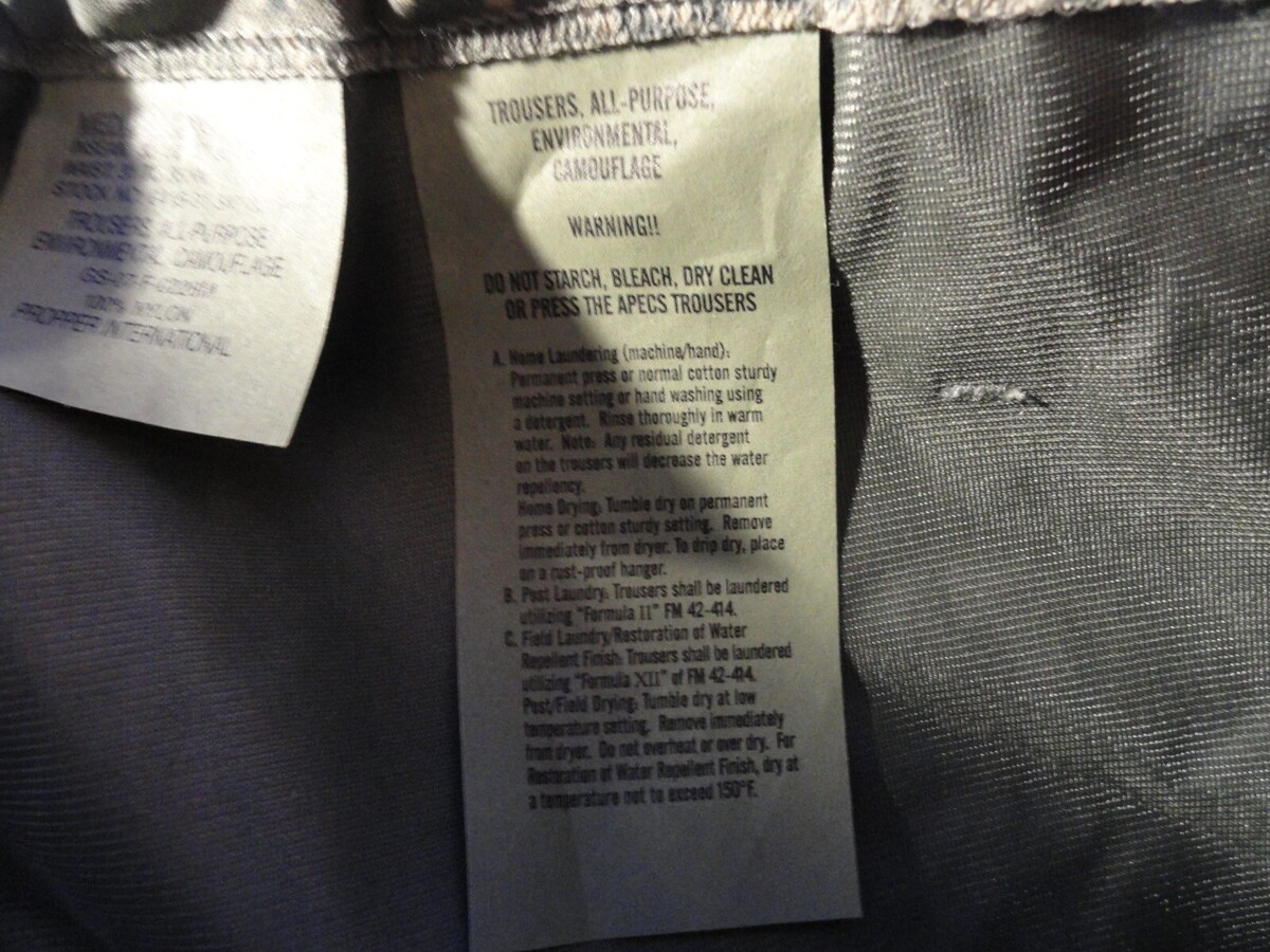 - PROPPER GORE-TEX PANTS ALL PURPOSE ENVIRONMENTAL CAMO ABU TIGER STRIPE APECS ML