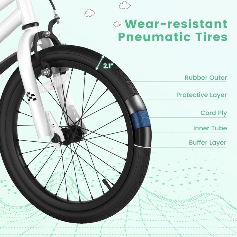 This 18'' children training bicycle is equipped with height-adjustable handlebar(30''-32.5'') and saddle(24''-28'') to meet your kids' needs, and allows your little ones to ride with the most comfortable position. Besides, it is equipped with a dual brake system( including hand brake and coaster brake) and fully enclosed chain guard for high safety. The anti-slip pedals and wear-resistant tires enable kids to ride on various flat roads. Besides, 2 training wheels add more stability. The front detachable basket is a perfect place for kids to store their toys. Last but not least, this toddler bicycle comes with 85% pre-assembled design, which is easy for you to install it quickly and effortlessly.