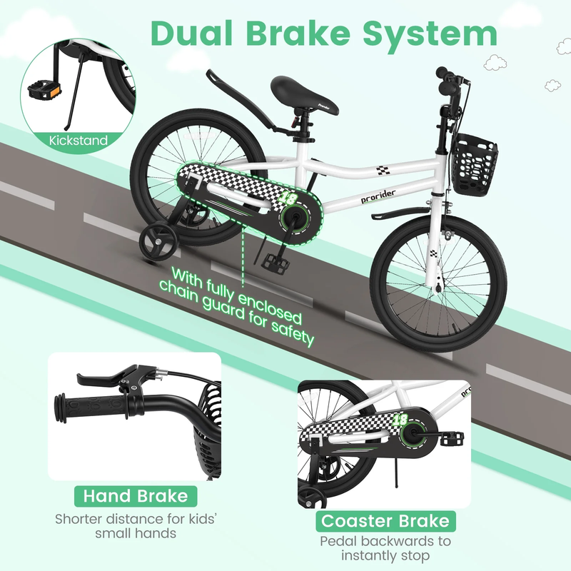 - Prorider 18'' Kid'S Bike with Removable Training Wheels & Basket for 4-8 Years O
