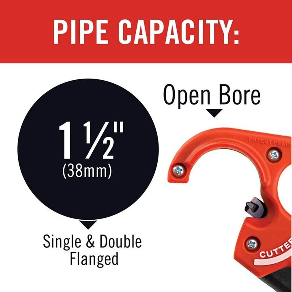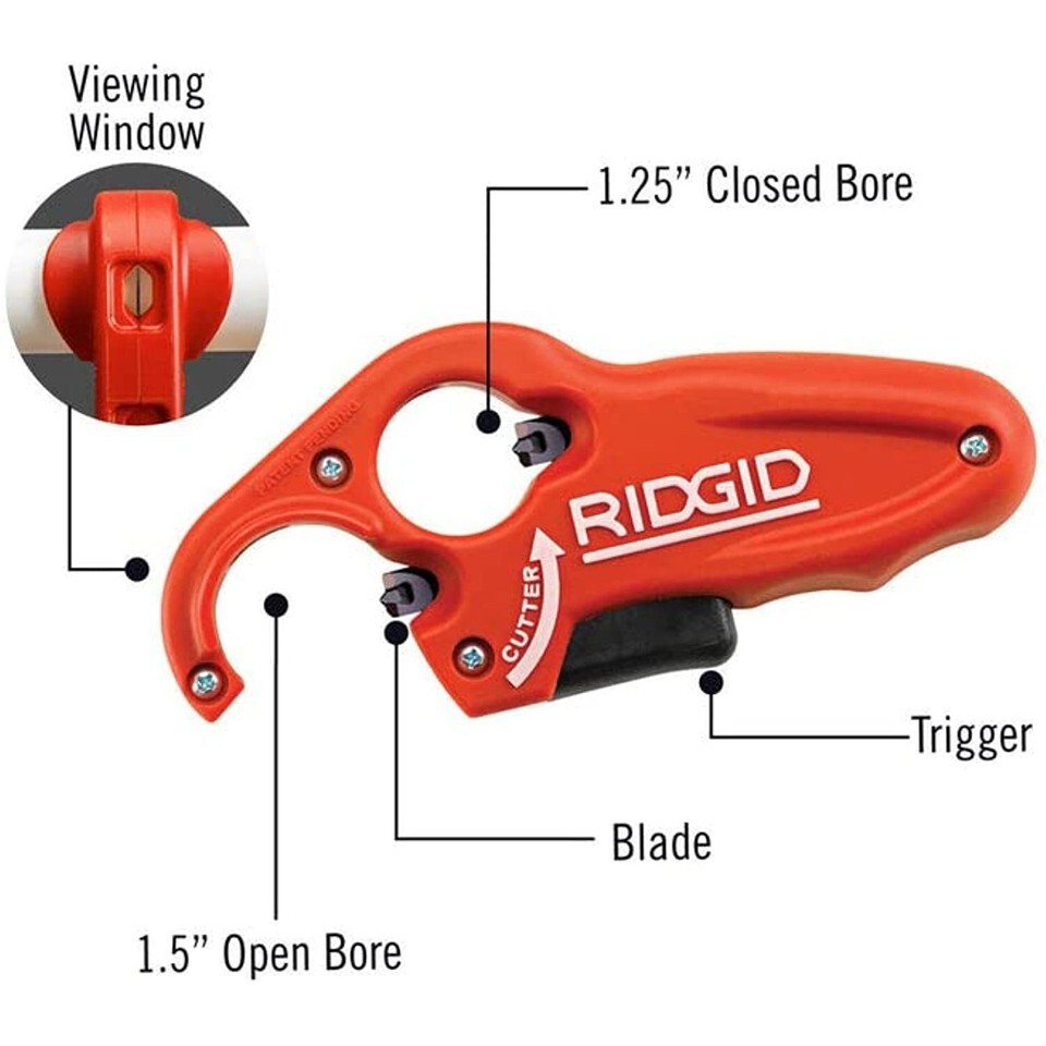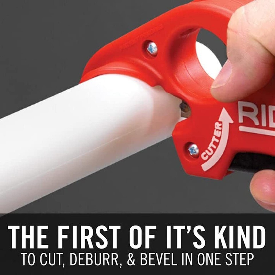With its innovative design, the RIDGID 41608 Plastic Drain Pipe Cutter is the first cutter of its kind to execute a clean, fast and straight cut on thin-wall plastic tube. Offering clean, automatic deburring, the cut produced by this pipe cutter results in only a fine strand of plastic, as opposed to the fuzz created around the cut of a hacksaw. You'll never need a second tool to deburr, as it automatically deburrs in parallel to the cutting action.