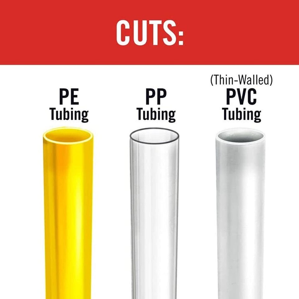 Executes clean, fast and straight cuts on polyethylene (PE), polypropylene (PP), and thin-wall PVC tubes