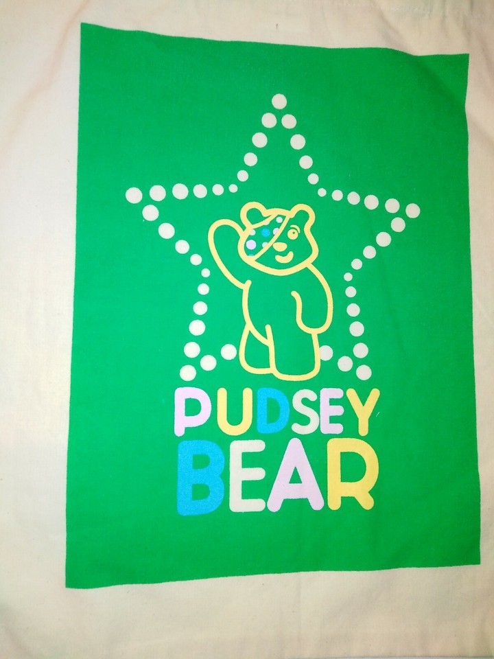 Pudsey Bear Bag For Life. A Children in Need favourite tote bag with Pudsey the bear on the front of the bag also eco-friendly but most importantly the Children in Need will benefit from buying this bag as we're making a small donation towards charity so please support us.