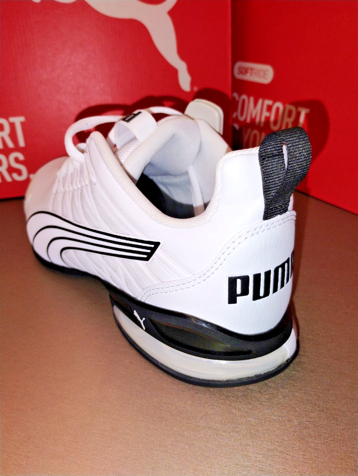 Puma Voltaic Evo White/Black Men # 9.5 Leather 311796 01 SoftFoam Sole Air Cell
