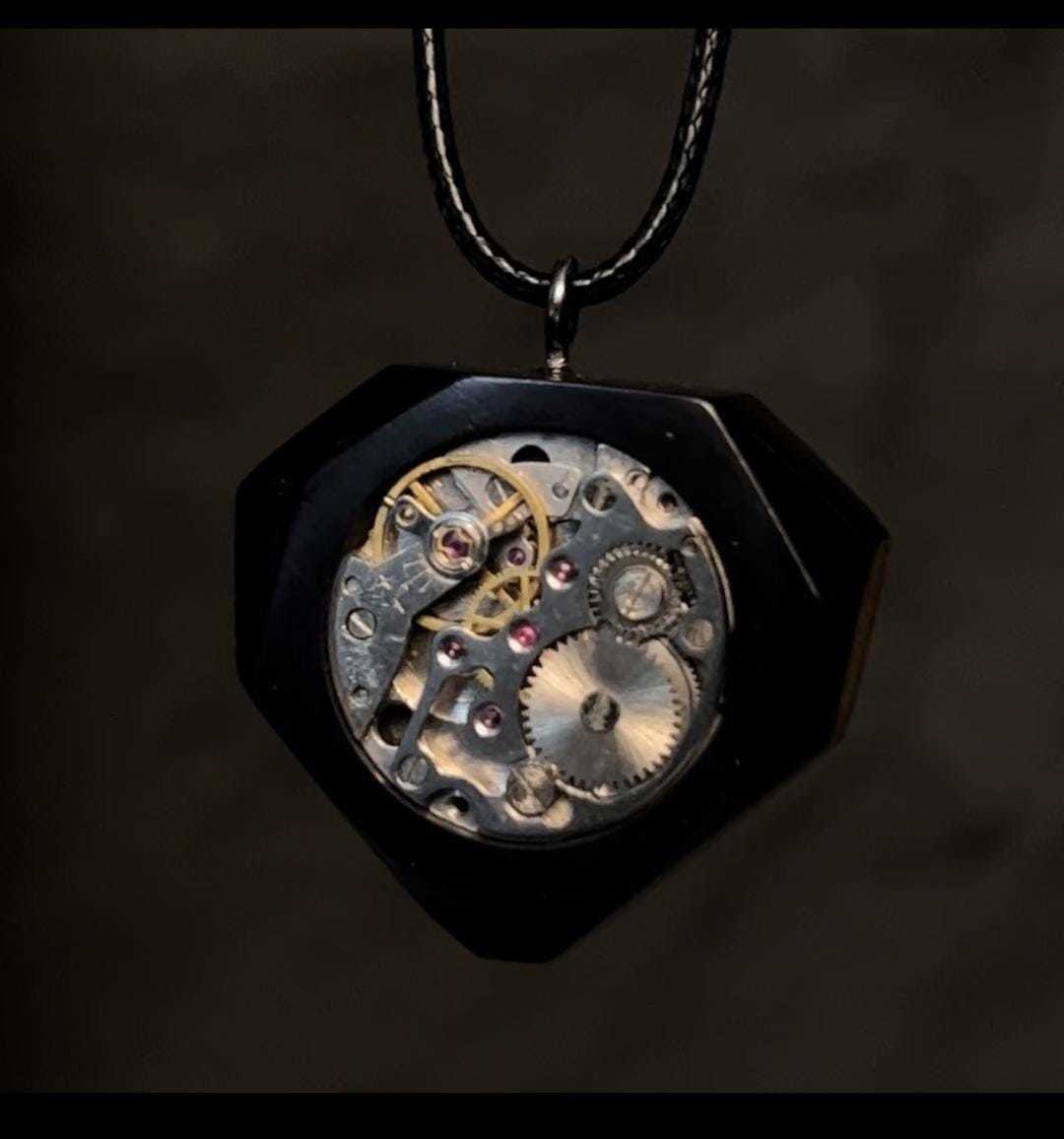 - Punk Style Necklace For Men Wooden Ornament With Mechanical Core Car Charm Handc