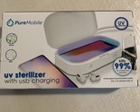 The Pure Mobile UV-C Sanitizer in white is a dual charger with a glossy, plain design that is compatible with various brands including ZTE, Apple, Samsung, and Nokia. It features a sticky pad mounting type and comes with a charging cable. The sanitizer is lightweight, washable, and case friendly, making it convenient for keeping your devices clean and free from germs. With its LED lighting and anti-scratch feature, it is a practical and stylish addition to your workspace.