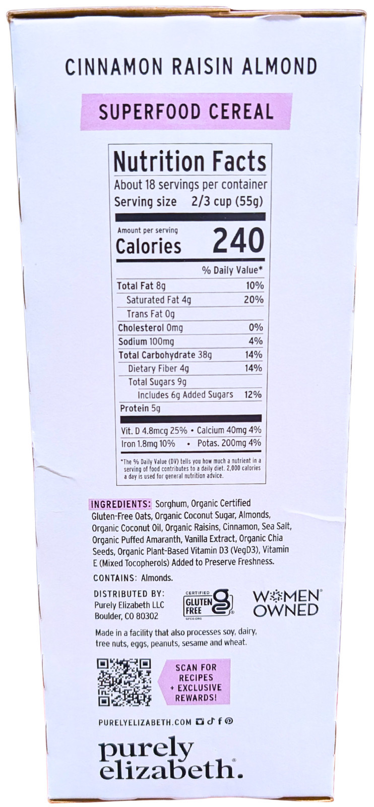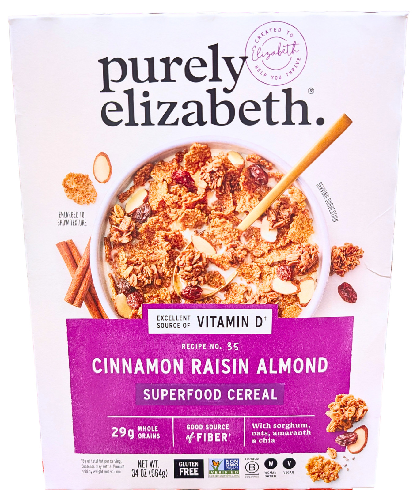 - Purely Elizabeth Cinnamon Raisin Almond Cereal 34 Ounce Box EXP 06/2026