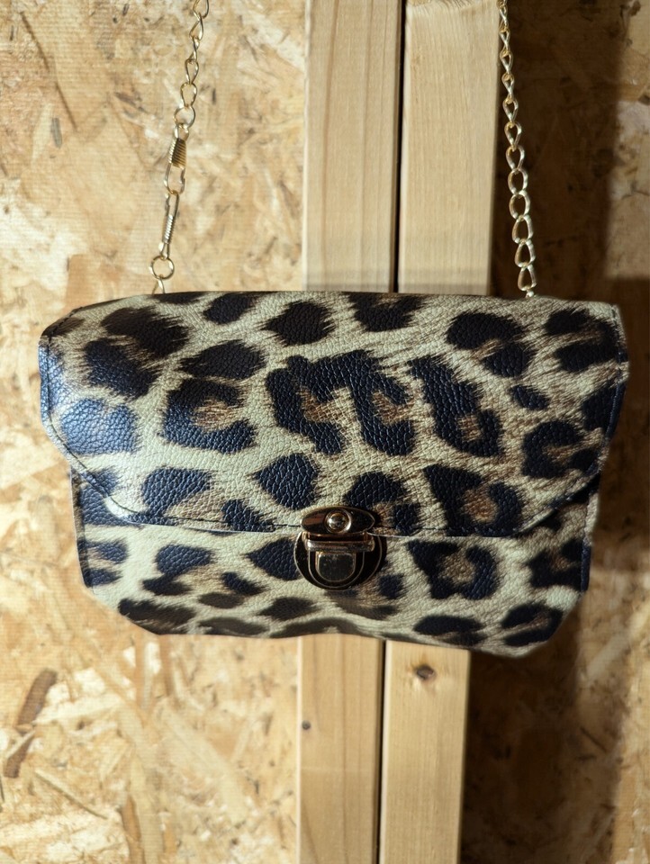 Elevate your style with this stunning Purfea faux leather crossbody bag. The bag features a gorgeous leopard print pattern that is sure to turn heads. The catch fastener closure keeps your belongings secure, while the gold hardware adds a touch of elegance.