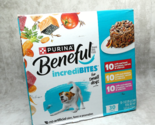 For Sale: Purina Beneful incrediBITES - Small Breed Wet Dog Food Variety Pack, (Pack of 30) 3 Oz. Cans - Beef, Chicken, Salmon - Best Before: July 2027