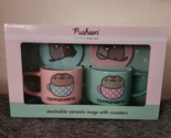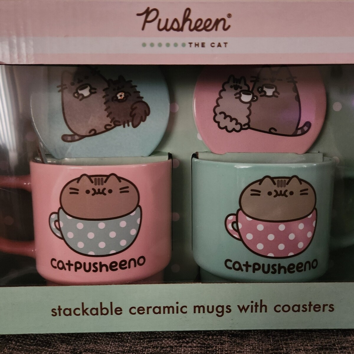 - Pusheen The Cat Stackable Ceramic Mugs With Coasters Set of Two - New