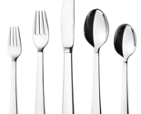 The set consists of TWELVE each: dinner spoon (3651011, 200mm), a dinner fork (3651012, 200mm), a dinner knife (3651014, 220mm), a dessert spoon (3651021, 165mm) and a lunch or starter fork (3651022, 160mm). It is made from stainless steel with a mirror polished finish and suitable for a dishwasher.