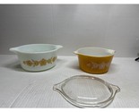 - Pyrex Bowls 1Qt & 1.5 Pt In Butterfly Gold & White Pattern 473(has lid) & 474b