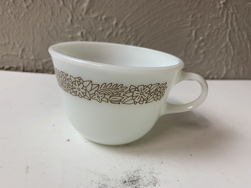 - Pyrex Coffee Cup Mug Woodland Brown Pattern Corning Milk Glass