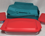 - Pyrex Portables Insulated Carrying Bag-Teal Green 16x11x5 w/ 3 pc Dish Set