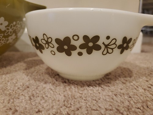 - Pyrex Spring Blossom Crazy Daisy Green 441 444 Bowls Vintage