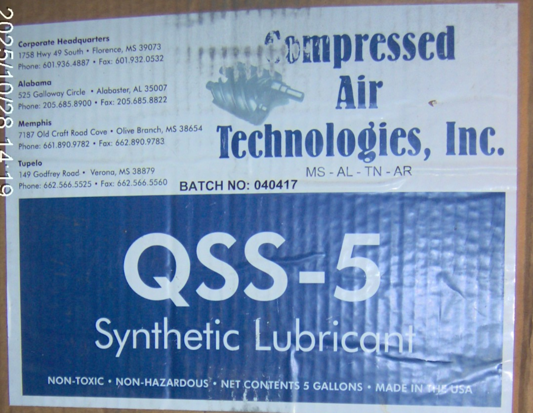 - QSS-5 Synthetic Lubricant by Compressed Air Technologies OEM5 gallon sealed pail