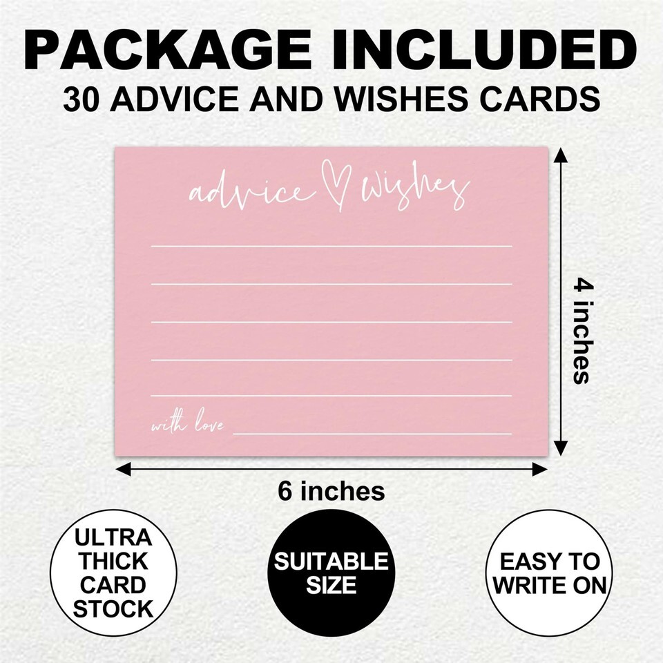 Elegant Minimalist Design: These 30 wedding advice cards measure 4x6 inches, feature a chic minimalist design, adding a touch of sophistication to your bridal shower.