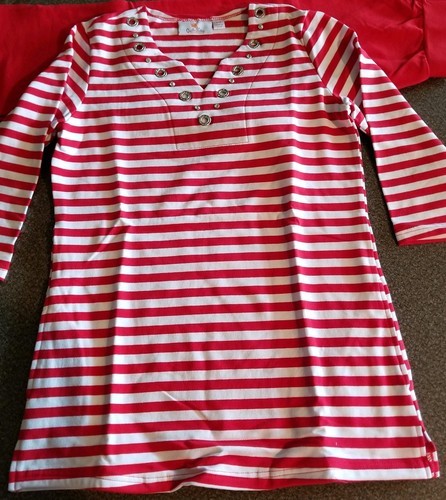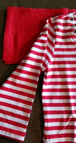 - Quacker Factory ~ 2 Piece Women's Size XXS Red Striped T-shirt & Crop Pant Set