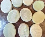 The product is a set of 10 quartzite disks stone vase filler rocks, perfect for adding a touch of natural elegance to any home decor. About 2? each. Variable coloration.