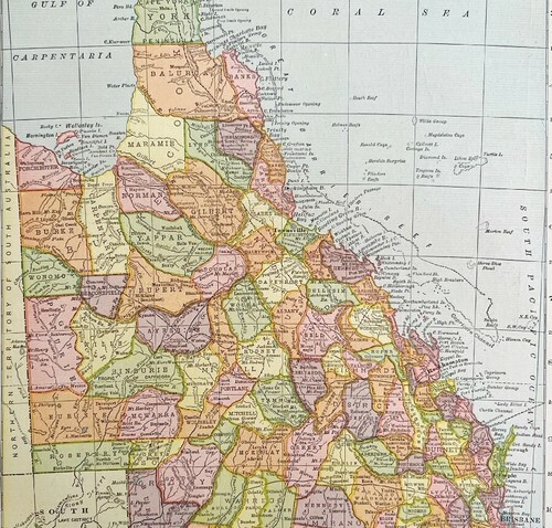 - Queensland Australia Map Lithograph 1909 Hammond Oceania Print LGADMap