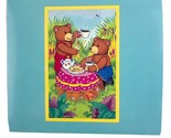 Cover has a boy and girl bear having a tea party in a meadow as a dragonfly hovers overhead and a frog waits patiently at their feet for scraps. Holds eight pictures 3.5 x 5 inches. Has a place for recording photo captions on the back page and the front inside cover is titled Sharing Special Moments and has lined space for you to write your thoughts. Outside dimensions are 5.75" wide and 5 1/8th tall. Includes envelope for mailing. Outer cover is in blue.