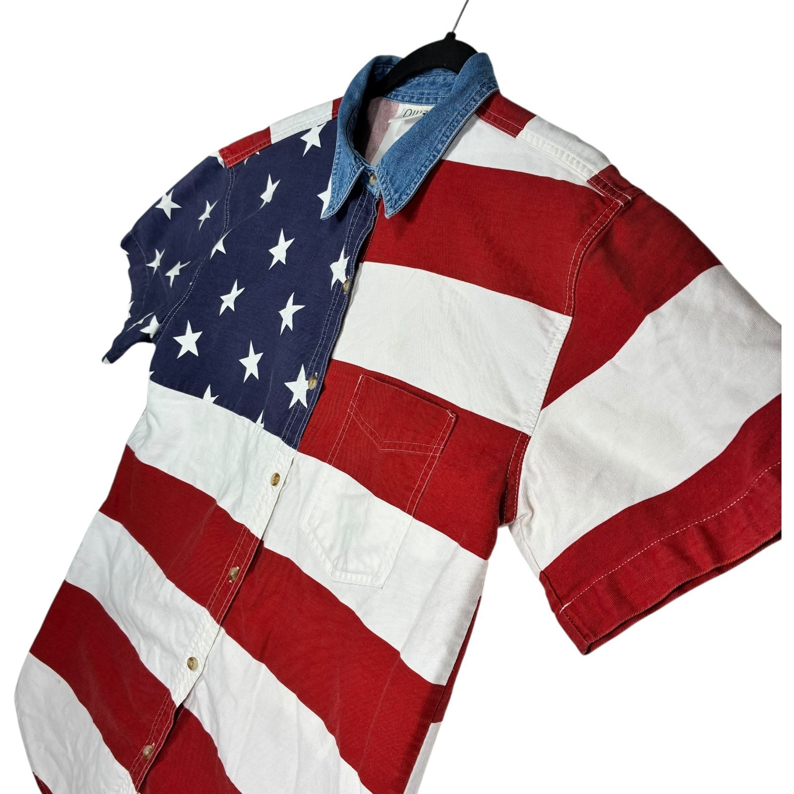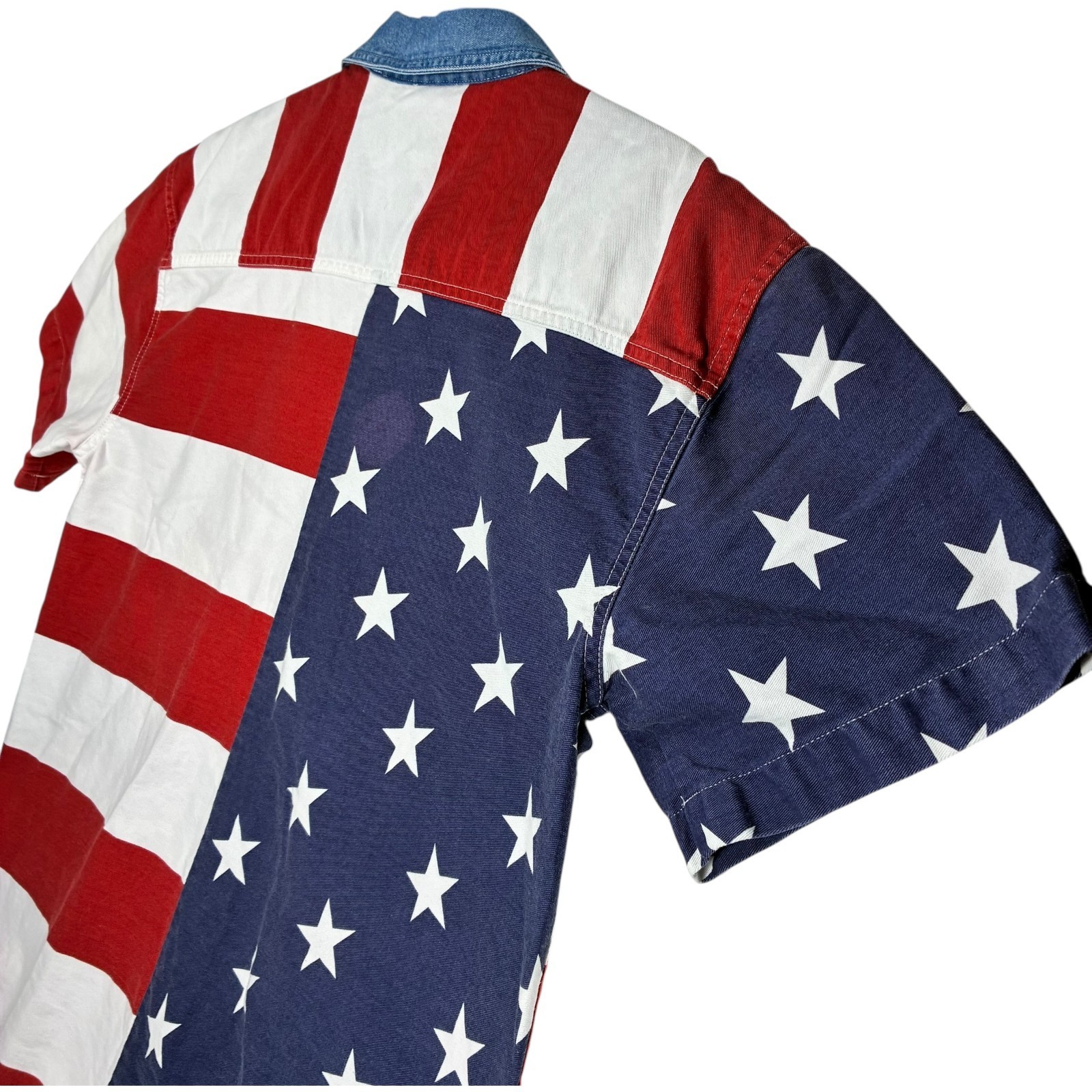 Quizz Again women's American Flag Patriotic Stars Stripes Denim Collared Shirt size M