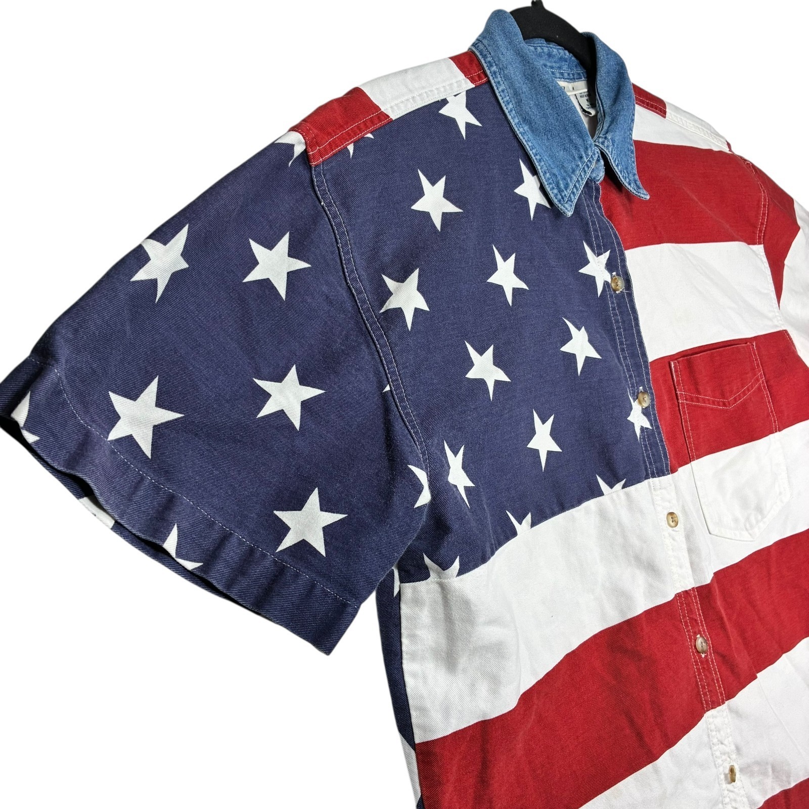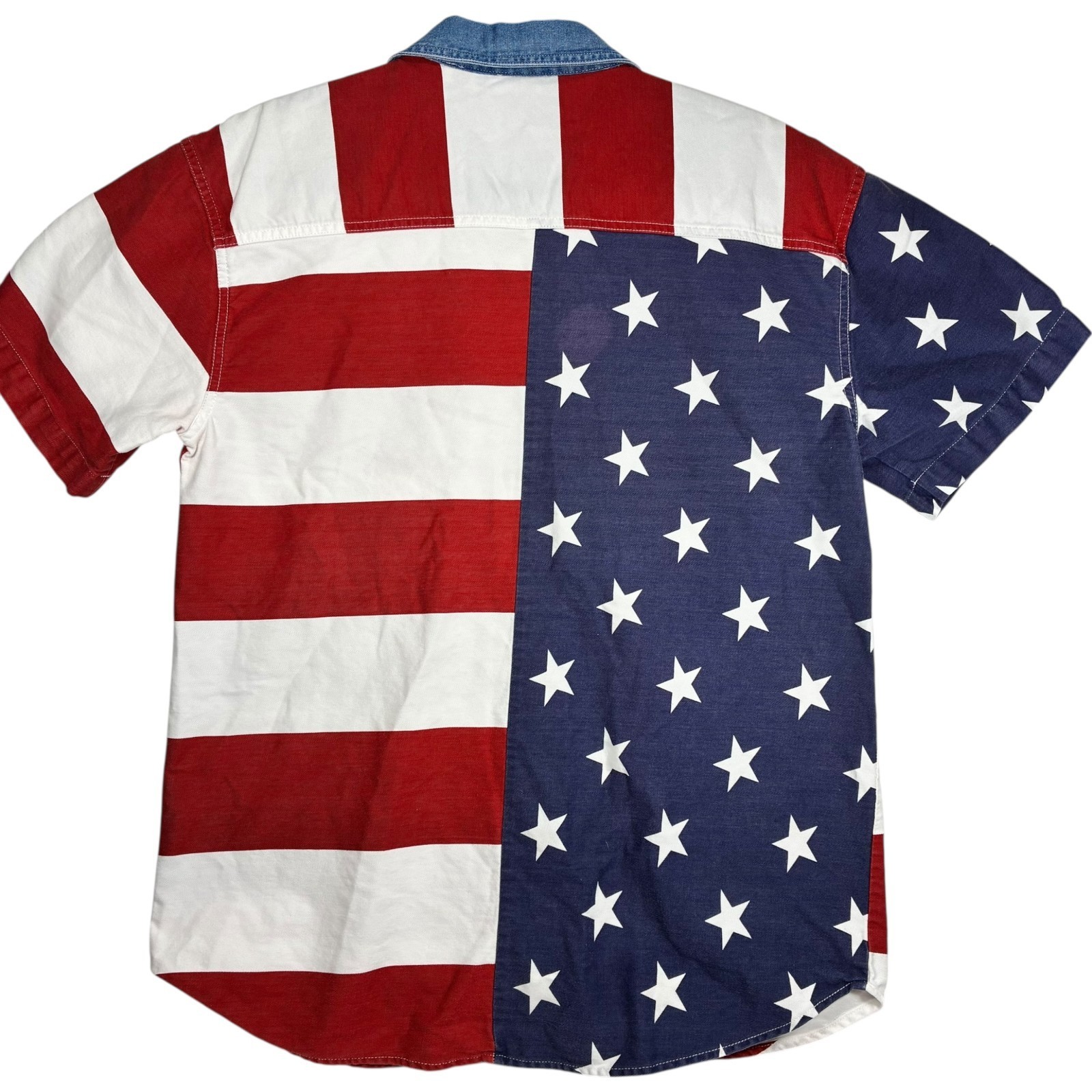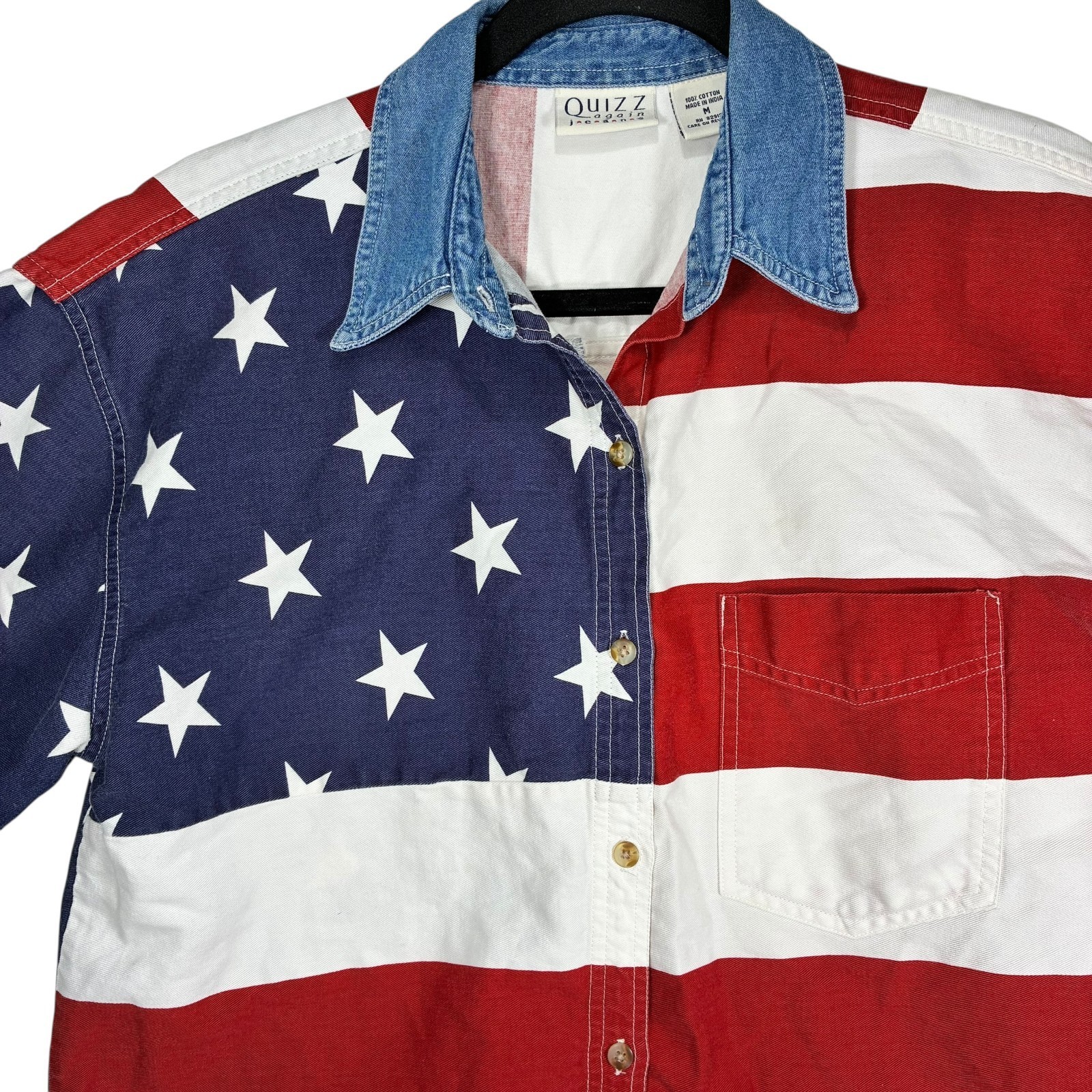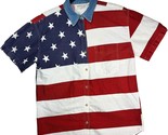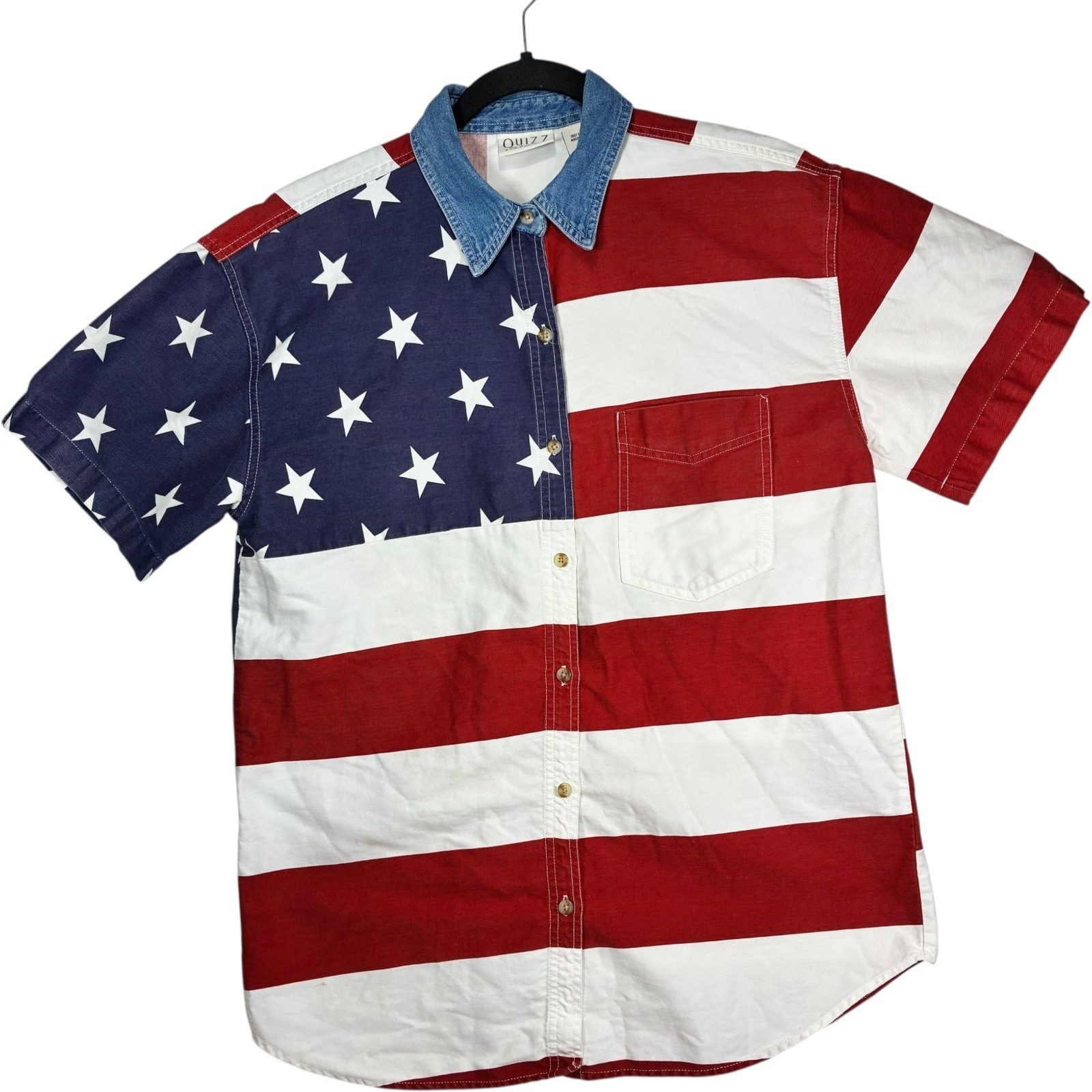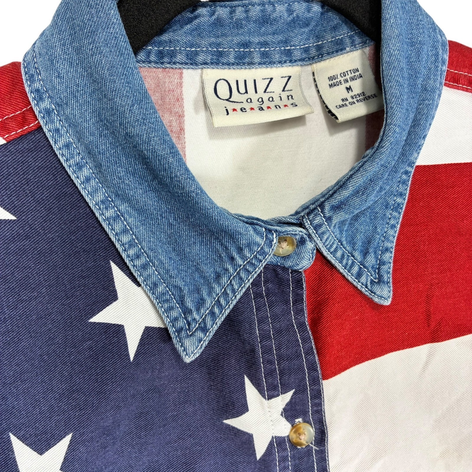 - Quizz Again womens American Flag Patriotic Stars Stripes Denim S/S Shirt size M