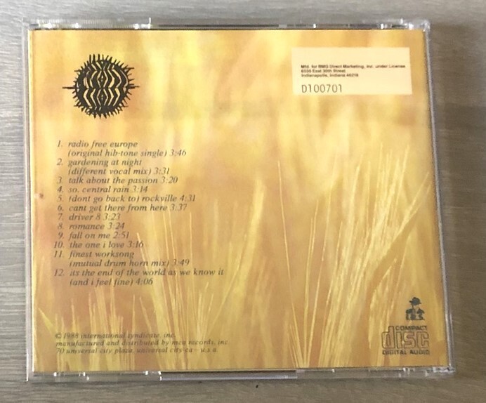 R.E.M. Eponymous CD 1988. You will receive the CD cover shown in the pictures. The CD is in good, clean, pre-owned, working condition. Calculated shipping is applied to cart when you purchase multiple items from my shop.