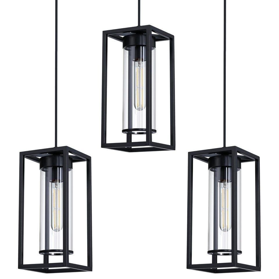 - RAINLIGHTING 3 Pack Pendant Ceiling Light 6" Grey Glass Black Finish Indoor