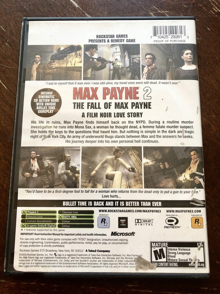 - RARE! Max Payne 2: The Fall of Max Payne Microsoft Xbox, 2003 COMPLETE!