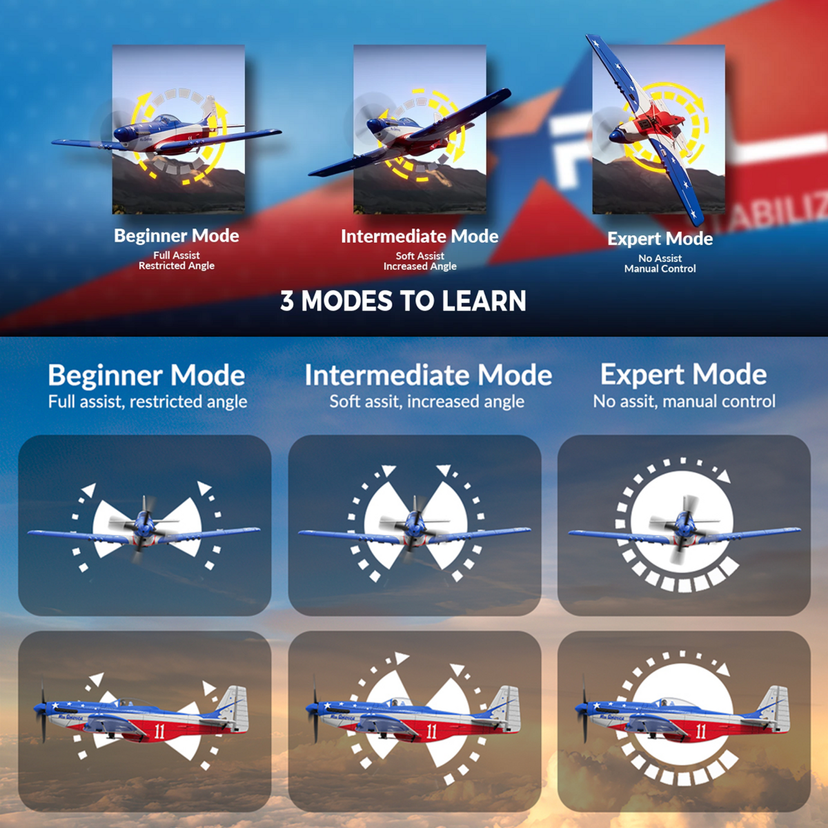 BEGINNERS' FIRST RC AIRPLANE TRAINER- 3-level flight control assists (Beginner level with full assist/ Intermediate with partial assist/ Expert for manual control) help beginners learn to fly step by step and ensuring stable hovering and precise control.