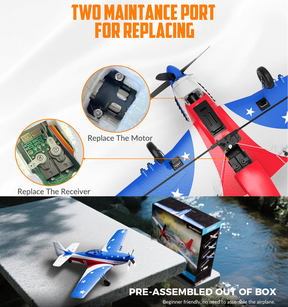 FULLY ASSEMBLED READY TO FLY- This version includes everything needed to get the model started, only the batteries for transmitter are required. It is fully assembled to get the plane take off within 1 minutes out of box. Portable package to go with you everywhere.