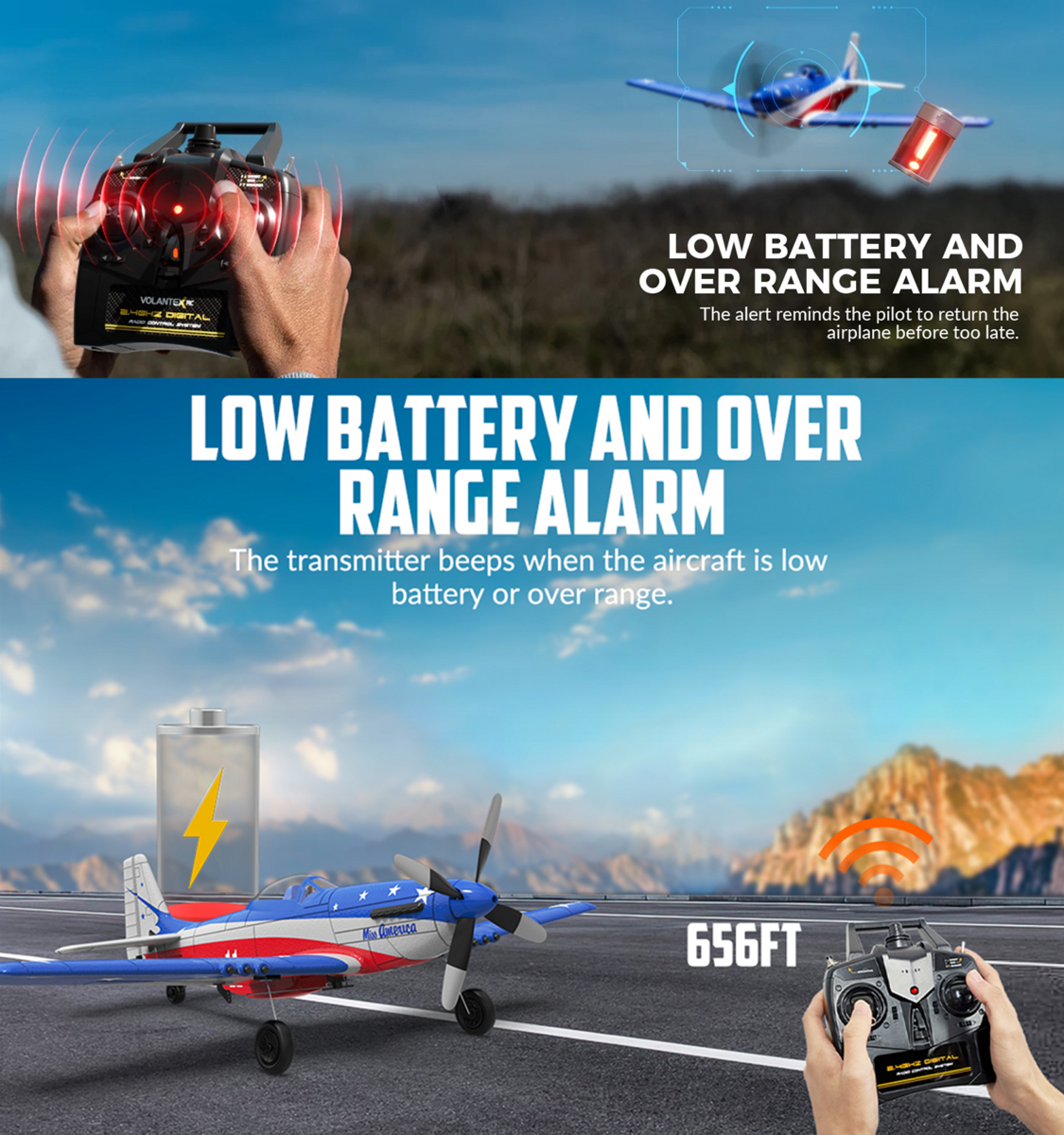 10-MINUTES FLIGHT TIME WITH LOW BATTERY ALERTS- The gear box system provides more thrust and power to increase speed, and more efficient to save battery's power, allowing the plane to fly about 10 minutes. Dual low-battery and signal-loss alarms boost safety.
