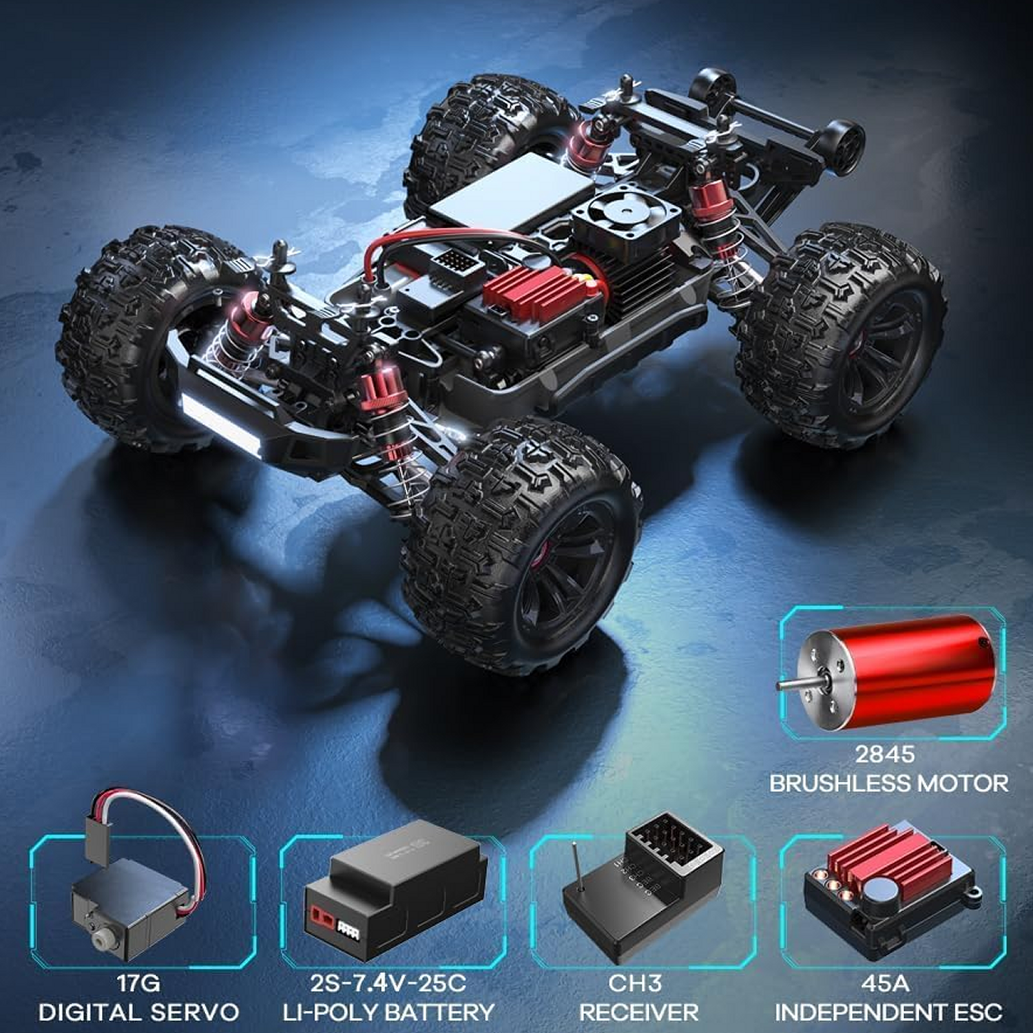 RC Brushless Monster Truck High Speed 4WD Off Road Basher Car 27+mph Metal Gear