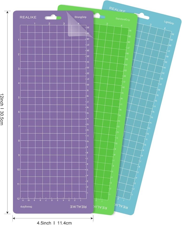 - REALIKE 3x Cutting Mats for Cricut Joy 4.5"x12" – Light, Standard, Strong Grip