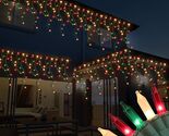 RECESKY Christmas Icicle Curtain Lights 7.7ft 100 Multi Color Indoor Outdoor