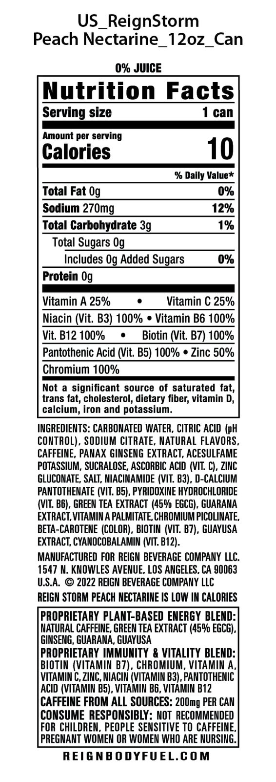 REIGN Storm, Peach Nectarine, Fitness & Wellness Energy Drink, 12 Fl Oz (Pack of