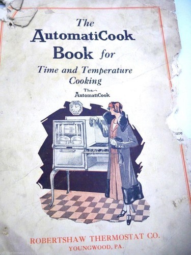 7- a feature book for the Robertshaw Thermostat Co. a cook book to use with the new "automaticook" stove- its in pretty rough shape, but tells you how to use the thing!