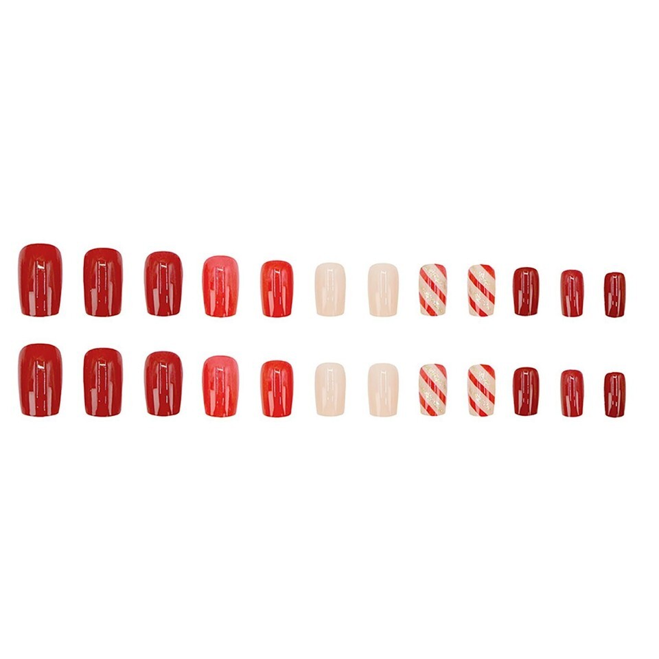 Package Includes:24 pcs Christmas fake nails, jelly glue, mini nail file, wooden stick and alcohol pads.You'll easily achieve a salon-looking gel nail polish mani at home in minutes