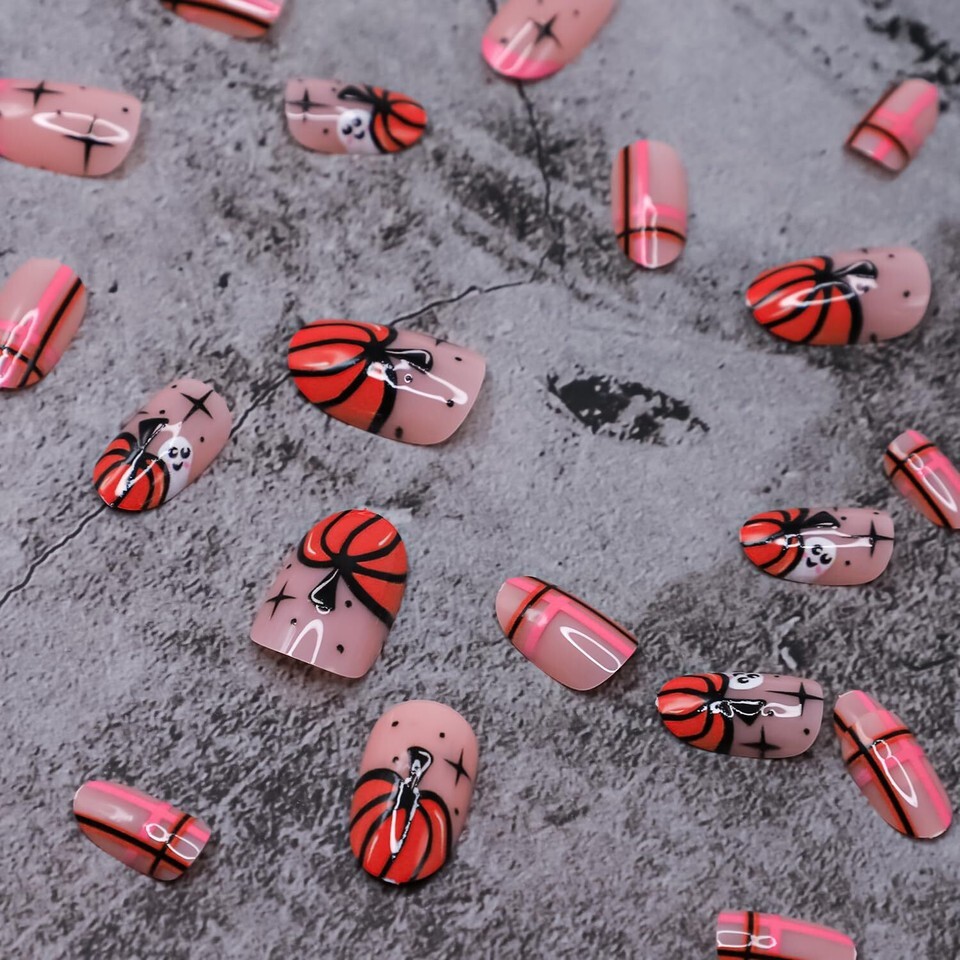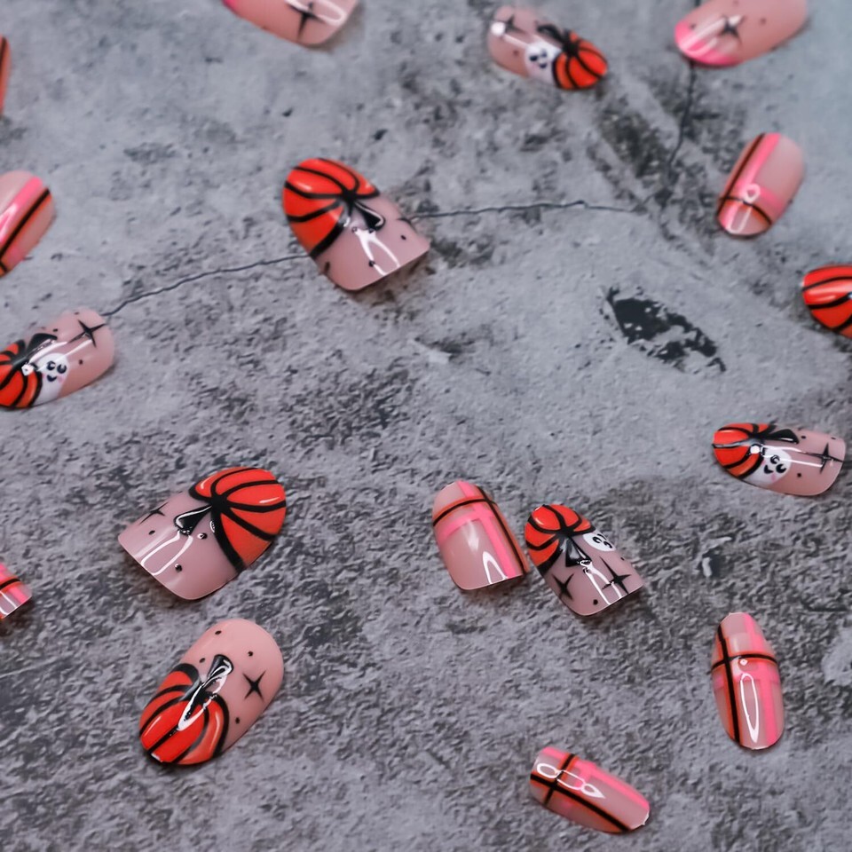 Halloween Nail Art Include:Our packaging box is exquisite and beautiful.It contains 24pcs Halloween fake nails and a set of DIY nail art tools.Meet your Halloween wearing needs.