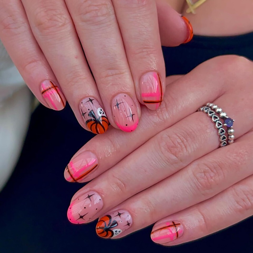 - RIICFDD Halloween Press On Nails 24 Pcs Light Pink Almond Full Cover Cute