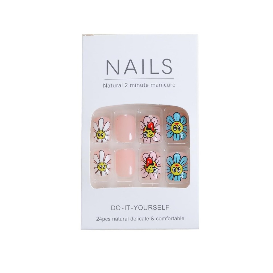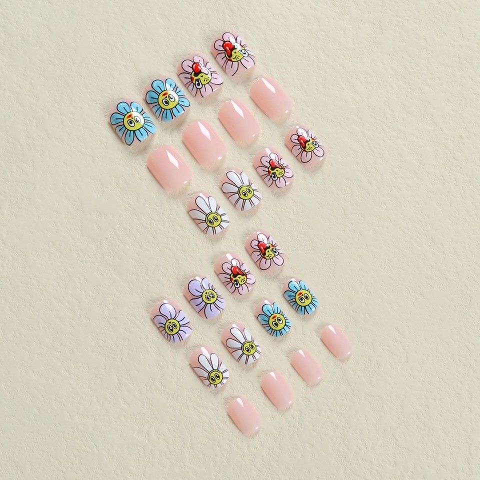 - RIICFDD Summer Press On Nails Short Square Nude Pink Flower 24Pcs