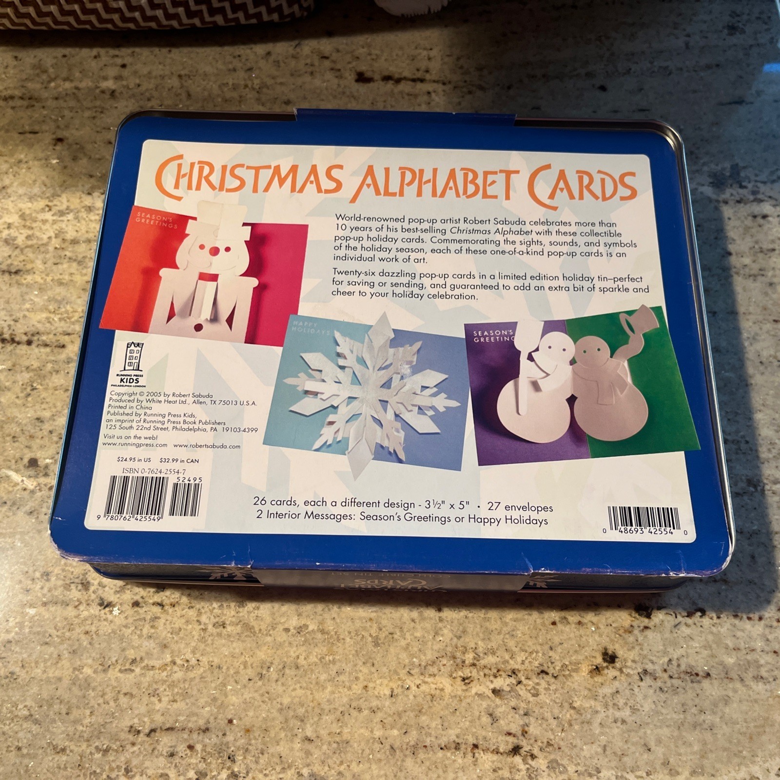 ROBERT SABUDA 2005 Christmas Alphabet Cards 26 Pop-up Cards Tin Box Sealed NOS