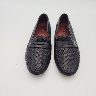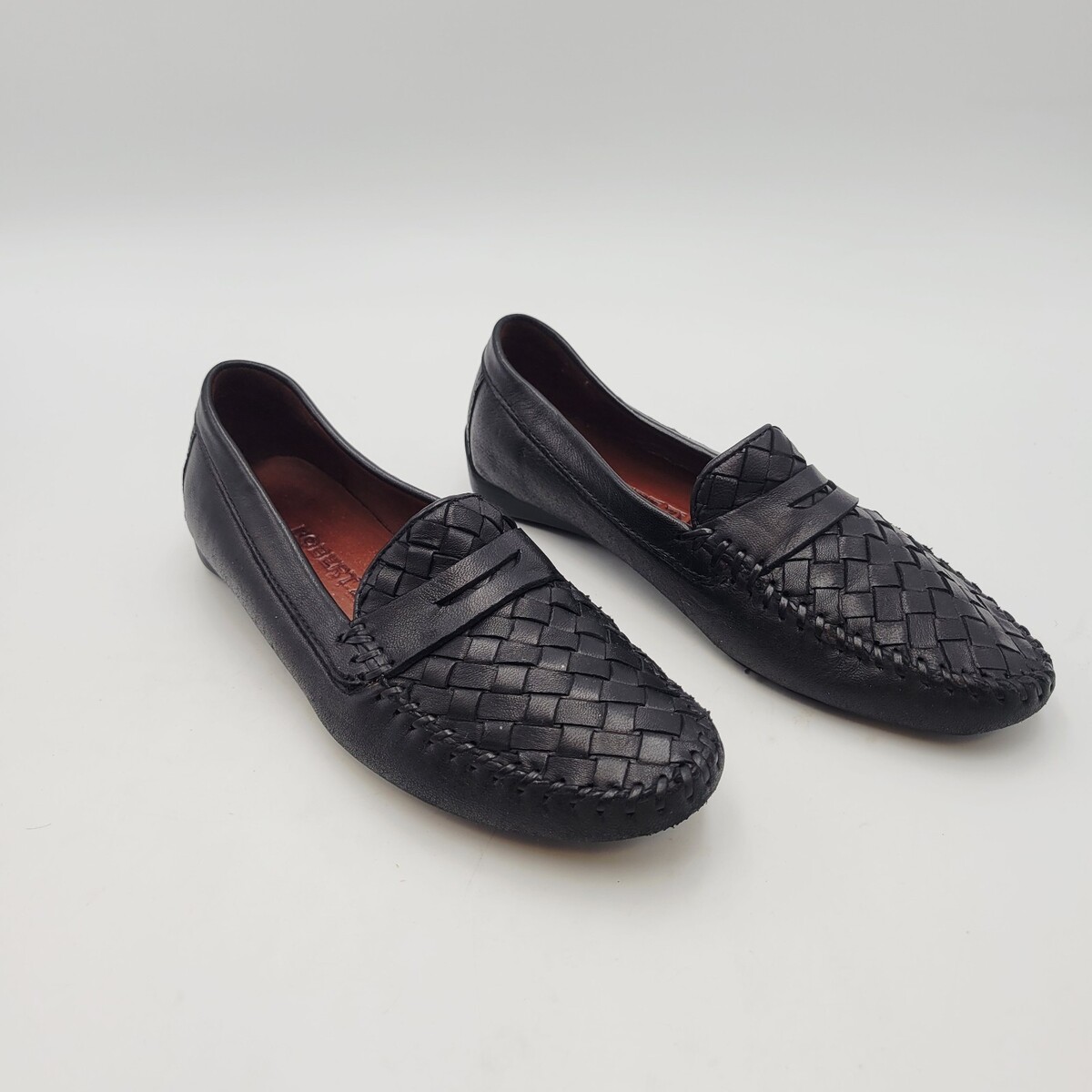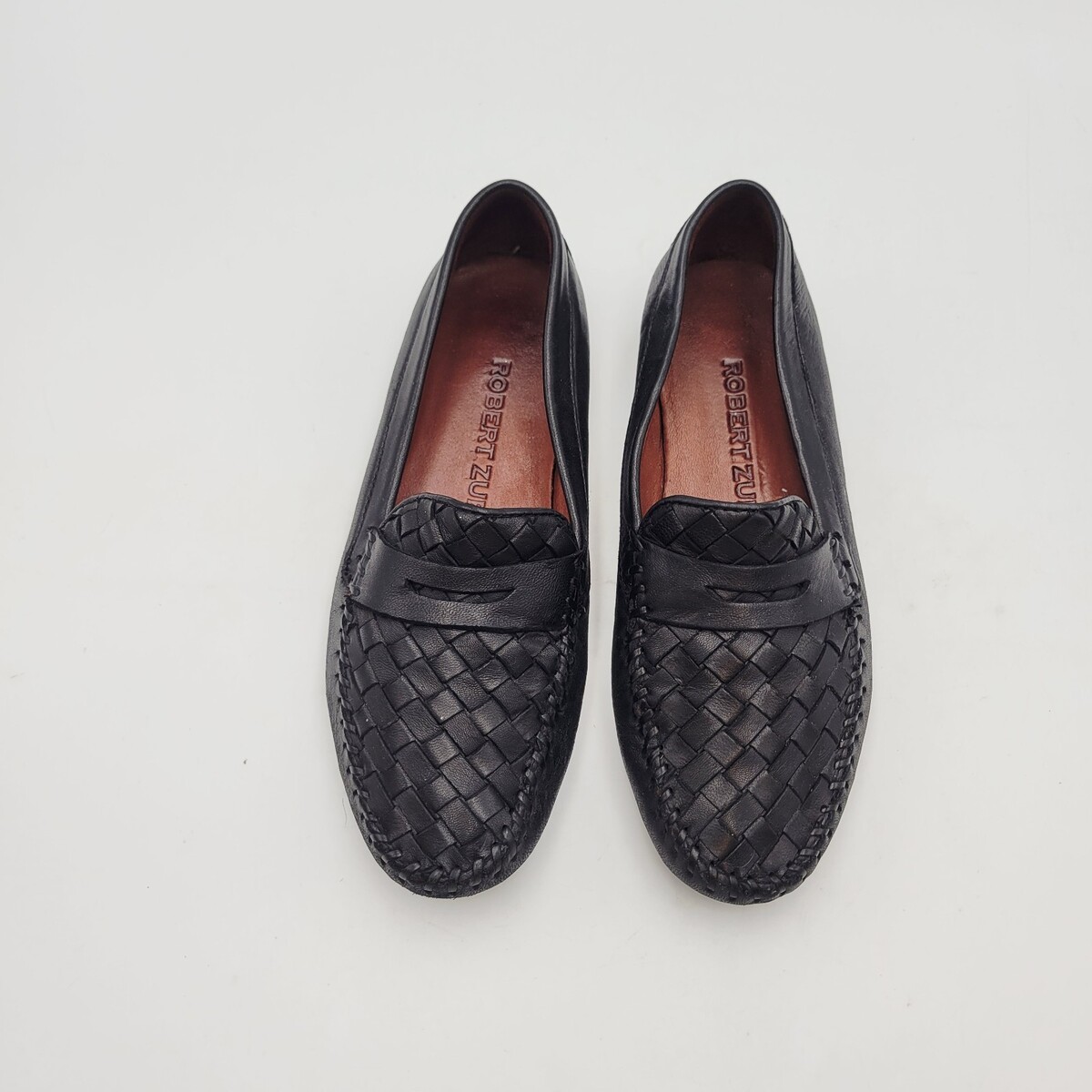 The ROBERT ZUR Petra Woven Black Leather Comfort Loafer is a stylish and versatile women's shoe in size 6.5.